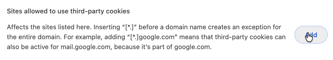Under Sites allowed to use third-party cookies, click Add: